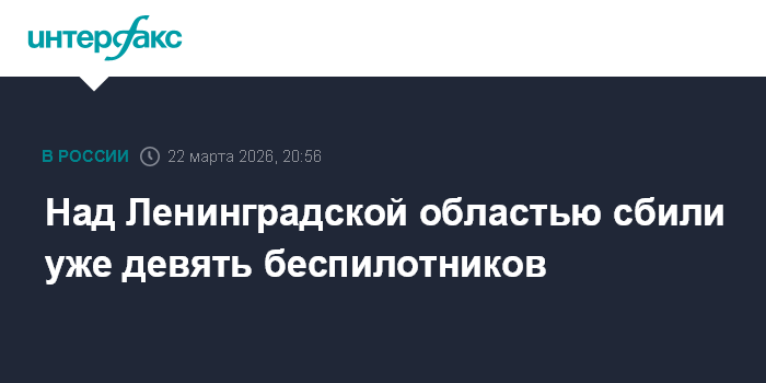 Москва. 22 марта. INTERFAX.RU - Девять беспилотников ликвидировано над территорией Ленинградской области в воскресенье, сообщил губернатор региона Александр Дрозденко в своем канале в Max.