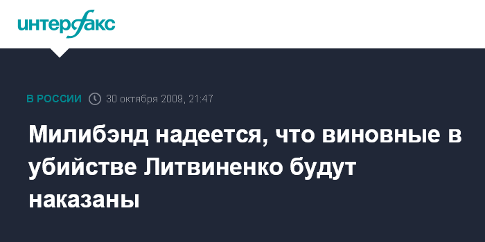 Милибэнд надеется, что виновные в убийстве Литвиненко будут наказаны