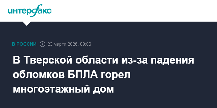 В Тверской области из-за падения обломков БПЛА горел многоэтажный дом