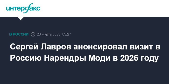Москва. 23 марта. INTERFAX.RU - Российская сторона ждет премьер-министра Индии Нарендру Моди с визитом в 2026 году, заявил глава МИД России Сергей Лавров.