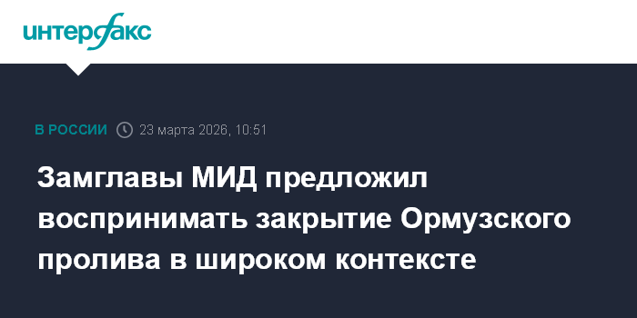 Москва. 23 марта. INTERFAX.RU - Москва выступает против блокирования Ормузского пролива, однако призывает воспринимать всю ситуацию в контексте событий на Ближнем Востоке, заявил журналистам замглавы МИД России Андрей Руденко.