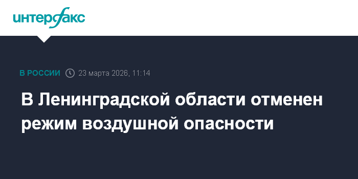 Москва. 23 марта. INTERFAX.RU - В Ленинградской области объявлен отбой воздушной опасности, сообщил губернатор региона Александр Дрозденко.