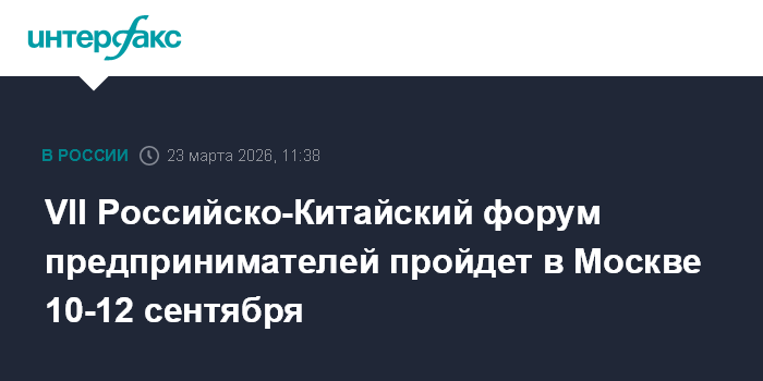 VII Российско-Китайский форум предпринимателей пройдет в Москве 10-12 сентября