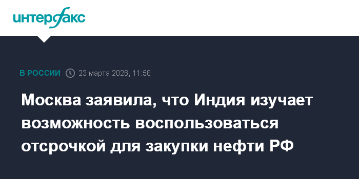 Москва заявила, что Индия изучает возможность воспользоваться отсрочкой для закупки нефти РФ