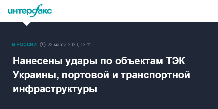 Нанесены удары по объектам ТЭК Украины, портовой и транспортной инфраструктуры