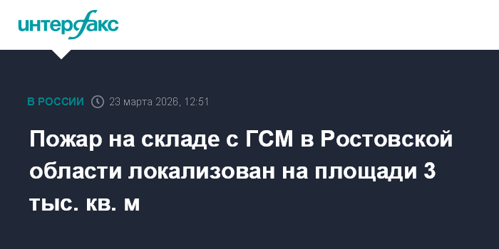 Ранее сообщалось, что информация о возгорании на складе ГСМ в селе Крым Мясниковского района Ростовской области поступила спасателям в 11:15. По первоначальным данным, общая площадь пожара в трех помещениях составляла 1 тыс. кв. метров.