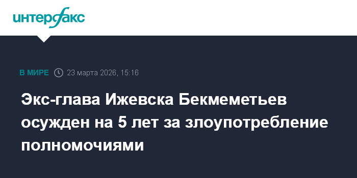 Как сообщалось, экс-глава Ижевска Бекмеметьев, занимавший этот пост в 2018-2023 годах, в июле 2023 года был задержан по подозрению в злоупотреблении должностными полномочиями и отправлен под домашний арест. 22 сентября суд перевел его под стражу за нарушение условий домашнего ареста.