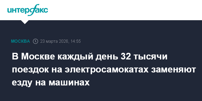 Москва. 23 марта. INTERFAX.RU - В Москве ежедневно совершаются 32 тысячи поездок на электросамокатах евместо поездок на автомобиле, сообщил на круглом столе в Совете Федерации замглавы Департамента транспорта столицы Дмитрий Пронин.