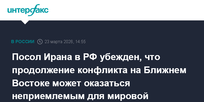 Посол Ирана в РФ убежден, что продолжение конфликта на Ближнем Востоке может оказаться неприемлемым для мировой экономики