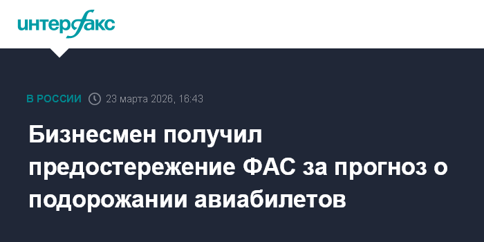 Бизнесмен получил предостережение ФАС за прогноз о подорожании авиабилетов