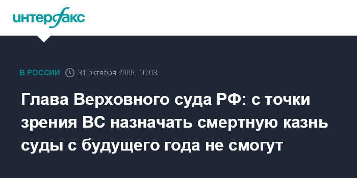 Глава Верховного суда РФ: с точки зрения ВС назначать смертную казнь суды с будущего года не смогут