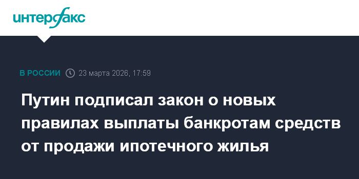 Путин подписал закон о новых правилах выплаты банкротам средств от продажи ипотечного жилья