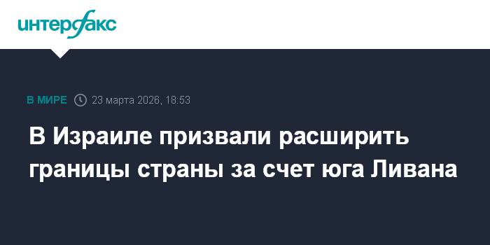 Москва. 23 марта. INTERFAX.RU - Израиль должен расширить границы вплоть до реки Литани в южном Ливане, заявил министр финансов Израиля Бецалель Смотрич.