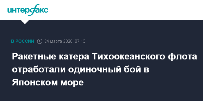 Москва. 24 марта. INTERFAX.RU - Ракетные катера "Р-29" и "Р-297" Тихоокеанского флота (ТОФ) отработали ведение боя одиночным кораблем с условным противником в морском полигоне залива Петра Великого в Японском море, сообщает пресс-служба ТОФ.