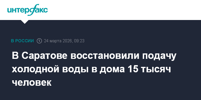 Москва. 24 марта. INTERFAX.RU - Саратовский водоканал ликвидировал аварию на сетях в Ленинском районе города, оставившую без холодной воды жителей нескольких крупных микрорайонов, сообщает телеграм-канал предприятия.