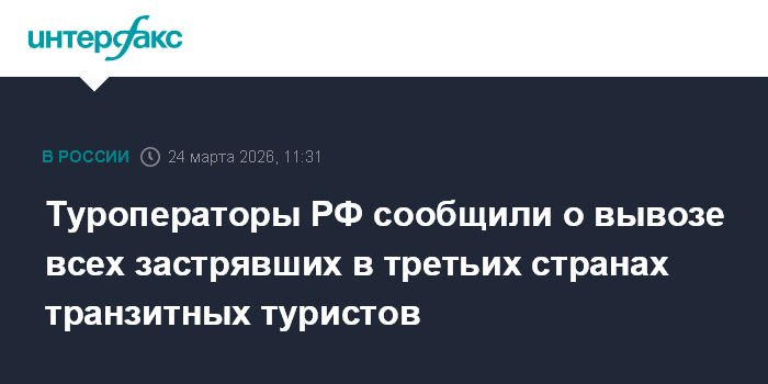 Москва. 24 марта. INTERFAX.RU - Российские туроператоры вывезли из зарубежных стран всех своих туристов, которые попали туда на транзитных рейсах через хабы Ближнего Востока и не смогли вернуться в срок после начала конфликта 28 февраля, сообщает во вторник Российский союз туриндустрии (РСТ).