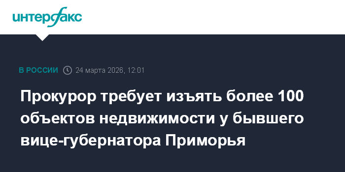 Москва. 24 марта. INTERFAX.RU - Суд во Владивостоке рассмотрит иск прокурора к бывшему вице-губернатору Приморского края об обращении в доход государства имущества, полученного коррупционным путем, сообщили "Интерфаксу" в объединенной пресс-службе судебной системы региона.