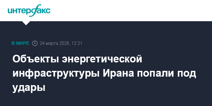 Москва. 24 марта. INTERFAX.RU - В Иране несколько объектов энергетической инфраструктуры попали под удары, несмотря на заявление президента США Дональда Трампа о временном отказе от ударов по иранской энергетике, сообщают иранские СМИ.