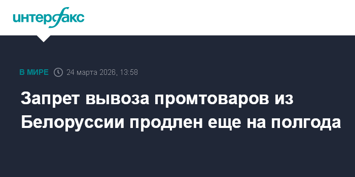 Москва. 24 марта. INTERFAX.RU - Правительство Белоруссии продлило запрет на вывоз более 250 наименований промышленных товаров до 22 сентября 2026 года, такое постановление Совета министров опубликовано на Национальном правовом портале.