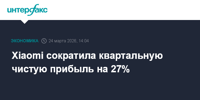 Москва. 24 марта. INTERFAX.RU - Китайский производитель потребительской электроники и электромобилей Xiaomi в четвертом квартале 2025 года сократил чистую прибыль на 27,3%, поскольку компания продолжает активно инвестировать в производство машин.