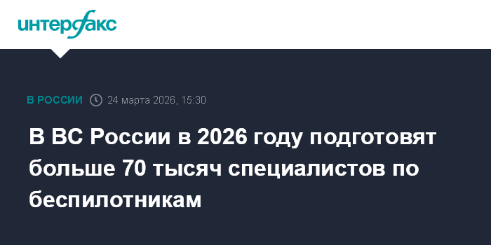 Москва. 24 марта. INTERFAX.RU - В Вооруженных силах России в 2026 году планируют подготовить более 70 тысяч специалистов войск беспилотных систем, сообщил в Совете Федерации замначальника Генштаба ВС Анатолий Концевой.