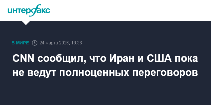 Москва. 24 марта. INTERFAX.RU - Тегеран получил от США через посредников ряд предложений, направленных на завершение конфликта, но о полноформатных переговорах пока говорить не приходится, сообщает во вторник CNN со ссылкой на источник в Иране.