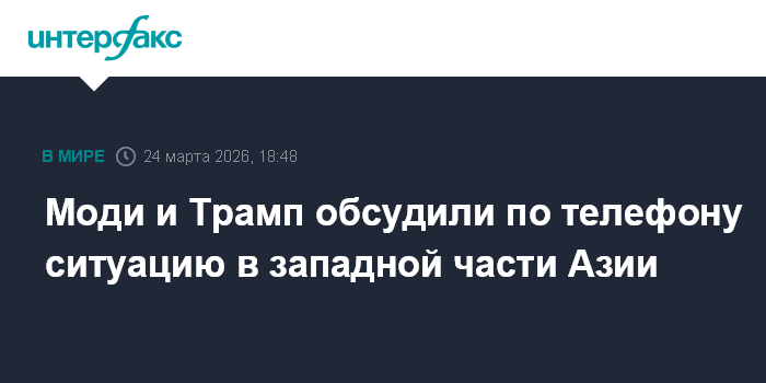 Москва. 24 марта. INTERFAX.RU - Премьер-министр Индии Нарендра Моди обсудил с президентом США Дональдом Трампом ситуацию в Западной Азии.