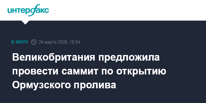 Москва. 24 марта. INTERFAX.RU - Великобритания может стать местом проведения саммита, посвященного обеспечению безопасности в Ормузском проливе, сообщает во вторник Politico.