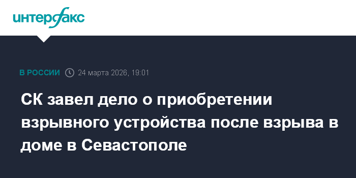 Москва. 24 марта. INTERFAX.RU - Главное следственное управление Следственного комитета России по Крыму и Севастополю возбудило уголовное дело о незаконном приобретении и хранении взрывного устройства после взрыва в многоэтажке в Севастополе, сообщили в СК во вторник.
