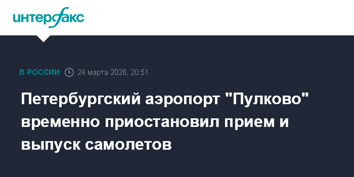 Москва. 24 марта. INTERFAX.RU - Петербургский аэропорт "Пулково" приостановил обслуживание рейсов, сообщает Росавиация.