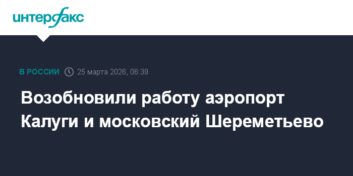 Москва. 25 марта. INTERFAX.RU - Аэропорт Калуги и столичный Шереметьево снова принимают и отправляют рейсы, сообщили в Росавиации.
