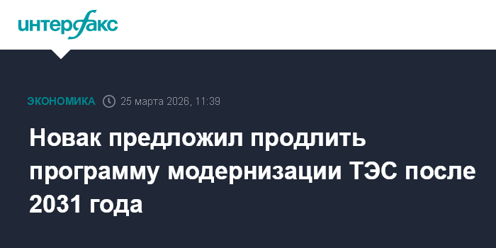 "В первую очередь необходимо продлить программу модернизации тепловой генерации. Она у нас заканчивается в 2031 году. И здесь нужно определиться со сроками, а может быть даже сделать ее бессрочной. Это очень эффективная программа, которая себя зарекомендовала с точки зрения повышения надежности, эффективности инфраструктуры", - сказал Новак