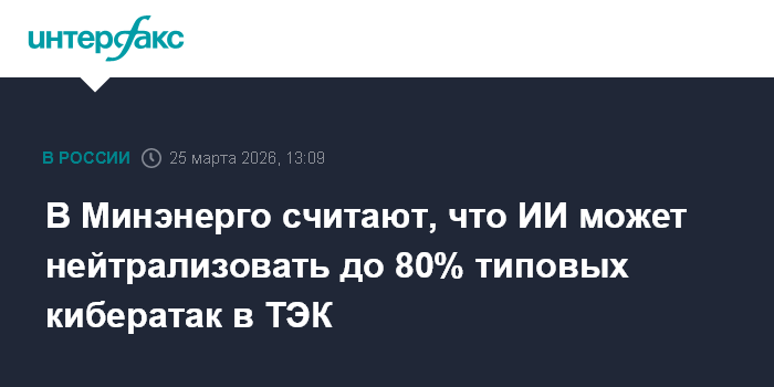 Москва. 25 марта. INTERFAX.RU - До 80% типовых кибератак в топливно-энергетическом комплексе может автоматически нейтрализовывать искусственный интеллект, оставляя ресурс экспертов только для сложных задач, говорится в презентации министра энергетики Сергея Цивилева, подготовленной для коллегии ведомства.