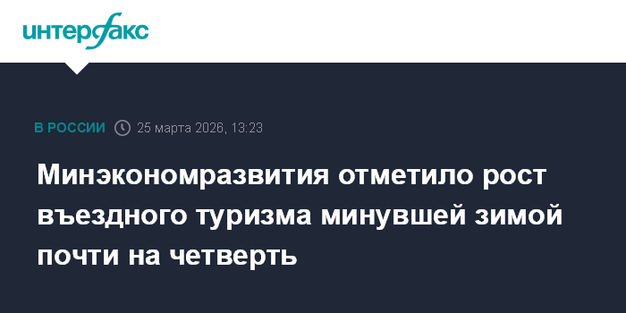 Москва. 25 марта. INTERFAX.RU - Иностранный турпоток в Россию с ноября 2025 года по февраль 2026-го составил порядка 1,6 млн человек, это почти на 25% больше, чем годом ранее, сообщил на круглом столе в Госдуме директор департамента развития туризма Минэкономразвития Георгий Груша.