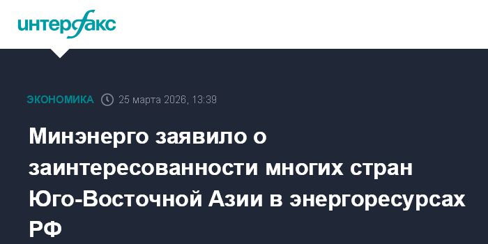 Минэнерго заявило о заинтересованности многих стран Юго-Восточной Азии в энергоресурсах РФ