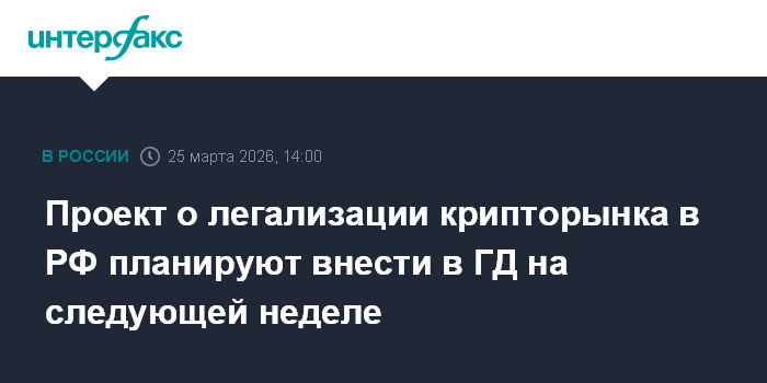 Проект о легализации крипторынка в РФ планируют внести в ГД на следующей неделе