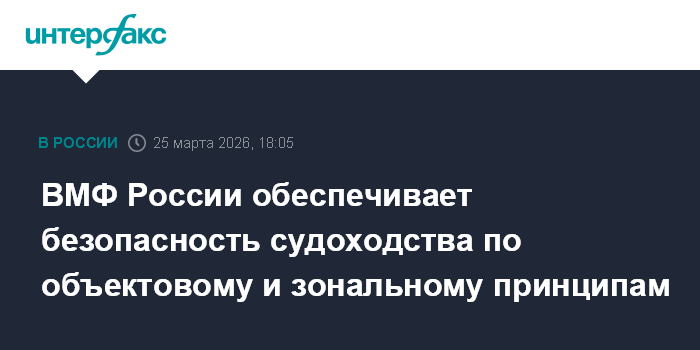 ВМФ России обеспечивает безопасность судоходства по объектовому и зональному принципам