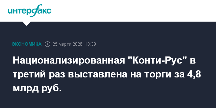 Национализированная "Конти-Рус" в третий раз выставлена на торги за 4,8 млрд руб.
