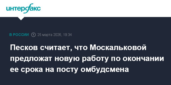 Песков считает, что Москальковой предложат новую работу по окончании ее срока на посту омбудсмена