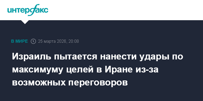 Москва. 25 марта. INTERFAX.RU - Армия обороны Израиля получила приказ нарастить насколько возможно интенсивность ударов по Ирану в связи с ожиданиями того, что вскоре могут стартовать переговоры по урегулированию конфликта в регионе, сообщает в среду The New York Times (NYT) со ссылкой на источники.
