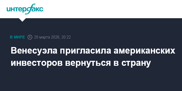 Москва. 25 марта. INTERFAX.RU - Временный президент Венесуэлы Делси Родригес пригласила американских инвесторов вернуться в страну.