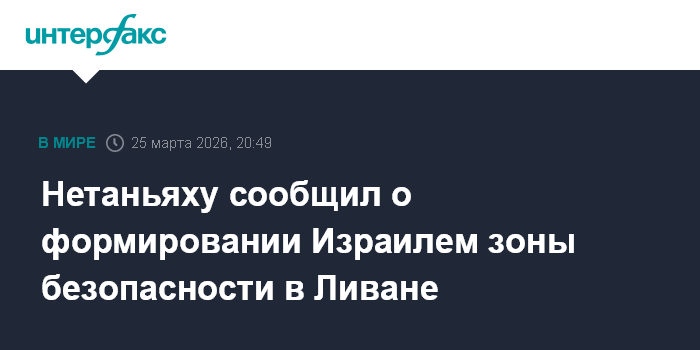 Москва. 25 марта. INTERFAX.RU - Израиль создает расширенную буферную зону в Ливане, а также продолжает военную кампанию против Ирана и движения "Хезболла", заявил в среду израильский премьер Биньямин Нетаньяху.