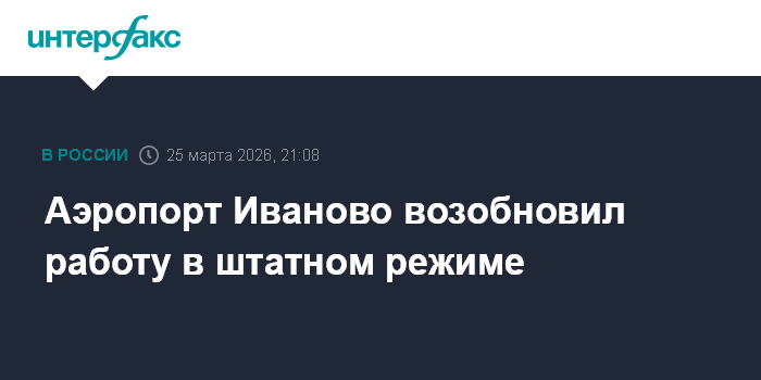 Москва. 25 марта. INTERFAX.RU - Аэропорт Иваново (Южный) возобновил обслуживание рейсов, сообщили в Росавиации.
