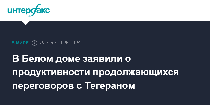Москва. 25 марта. INTERFAX.RU - Переговоры США с Ираном продолжаются, заявила пресс-секретарь Белого дома Кэролайн Левитт.