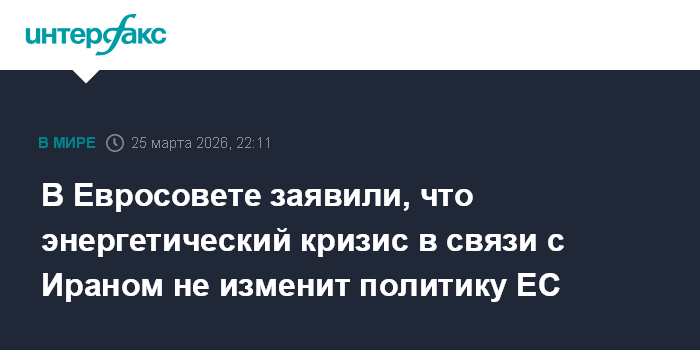 В Евросовете заявили, что энергетический кризис в связи с Ираном не изменит политику ЕС