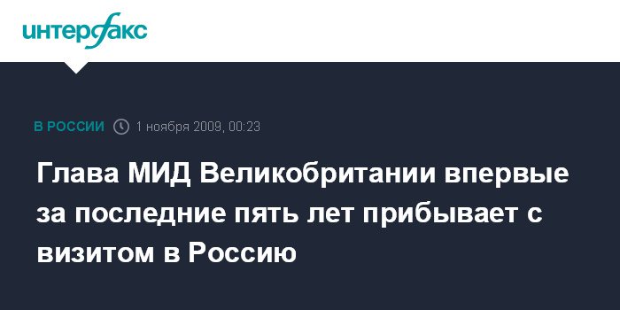 Предстоящий визит Д.Милибэнда станет первой за последние пять лет поездкой британского чиновника такого уровня в Россию. Отношения Москвы и Лондона резко ухудшились в 2006 году вскоре после убийства в Лондоне бывшего офицера ФСБ Александра Литвиненко. В его убийстве британские власти обвиняют гражданина России Андрея Лугового.