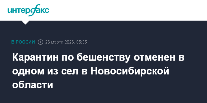 "Отменить установленные ограничительные мероприятия (карантин) по бешенству на территории села Новорозино Новониколаевского сельсовета Купинского района Новосибирской области с 24.03.2026", - говорится в тексте распоряжения.