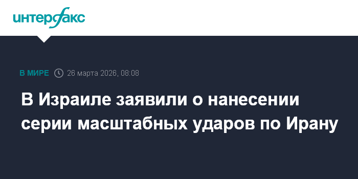 Москва. 26 марта. INTERFAX.RU - ВВС Израиля нанесли серию авиаударов по нескольким районам Ирана, сообщает Армия обороны Израиля (ЦАХАЛ).