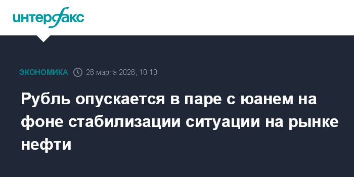 Москва. 26 марта. INTERFAX.RU - Китайский юань укрепляется на Московской бирже при открытии торгов в четверг, корректируется вверх после сильного падения в начале недели. Рубль опускается на фоне стабилизации ситуации на рынке нефти, поддержку его котировкам продолжает оказывать спрос на рублевую ликвидность при подготовке экспортеров к налоговым выплатам марта.