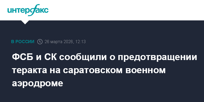 Москва. 26 марта. INTERFAX.RU - ФСБ и Следственный комитет РФ сообщили о задержании в Саратовской области мужчины, который по заданию украинских спецслужб должен был устроить атаку на военный аэродром беспилотников со взрывчаткой.